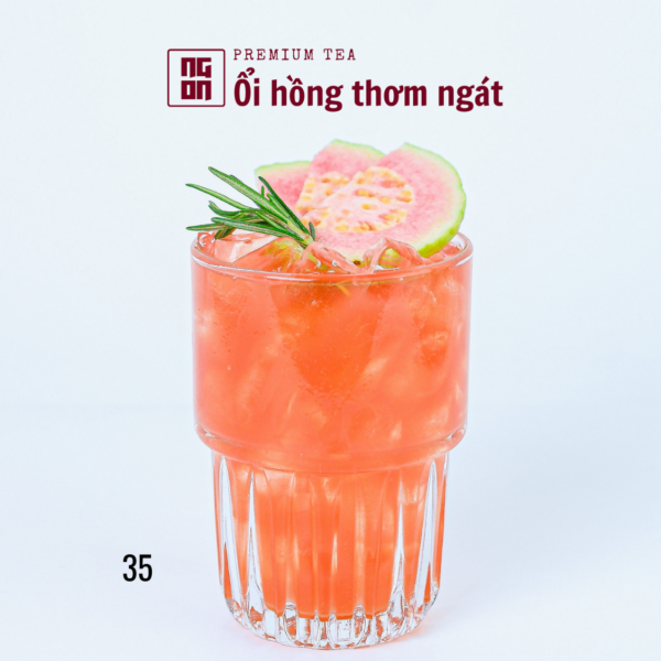 Ổi hồng ruby cỡ vừa, hạt nhỏ, trái tròn được lựa chọn tỉ mỉ, bao giấy chín chậm trong nhiệt độ 15”c, tươm mật ổi trong trái vừa chín tới, ép nước thơm tươi, vị ngọt tự nhiên, tràn đầy năng lượng sảng khoái cùng trà xanh hoa nhài búp non. Dùng kèm trân châu giòn và lát ổi chín dẻo. Size L